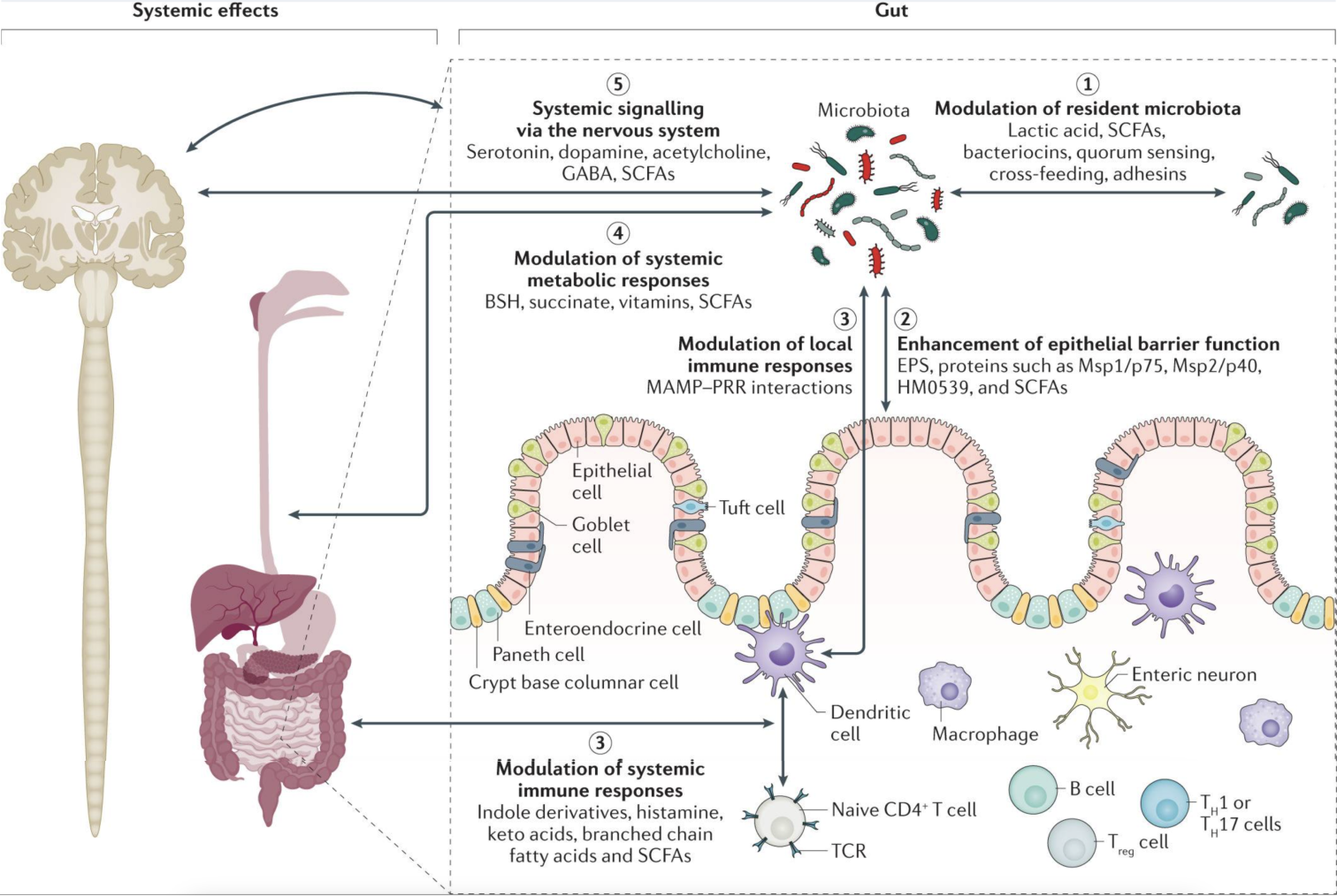 Постулират се пет механизма на действие на постбиотиците: